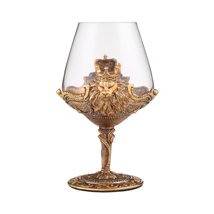 Бокал для коньяка "Лев", 550 мл, золото, подарочная коробка