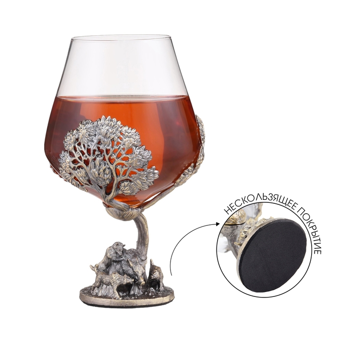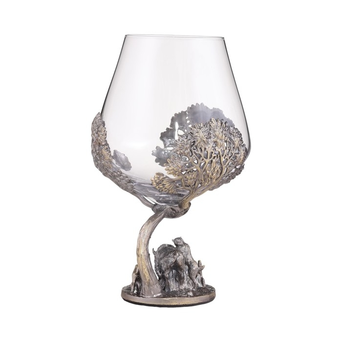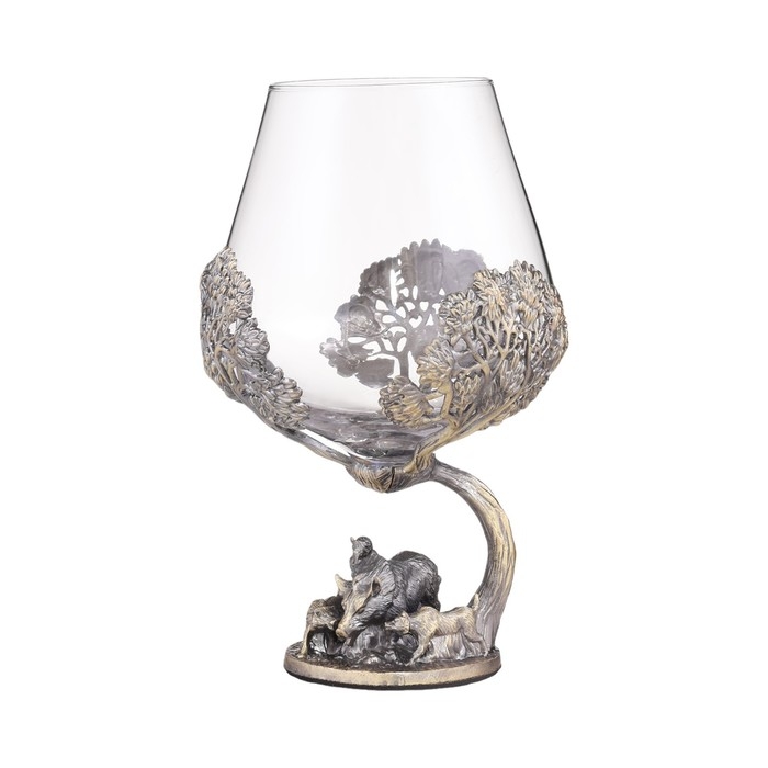 Бокал для коньяка "Охота на кабана", 550 мл, бронза, подарочная коробка