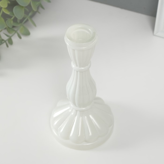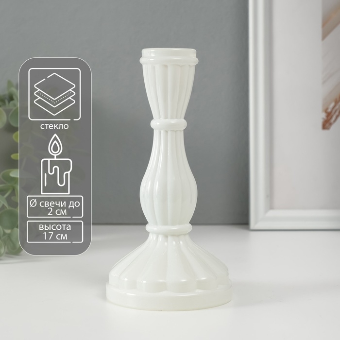 Подсвечник стекло на 1 свечу "Анита" белый d=2 см 8х8х17 см