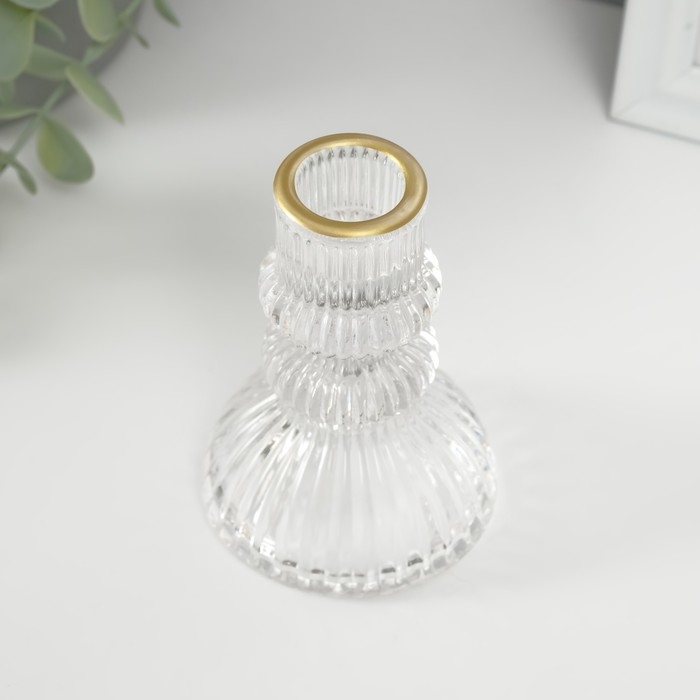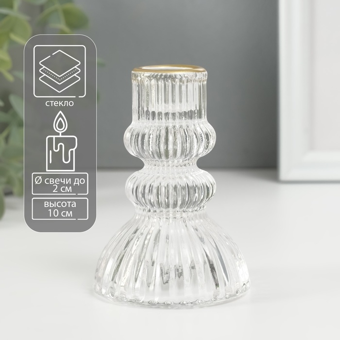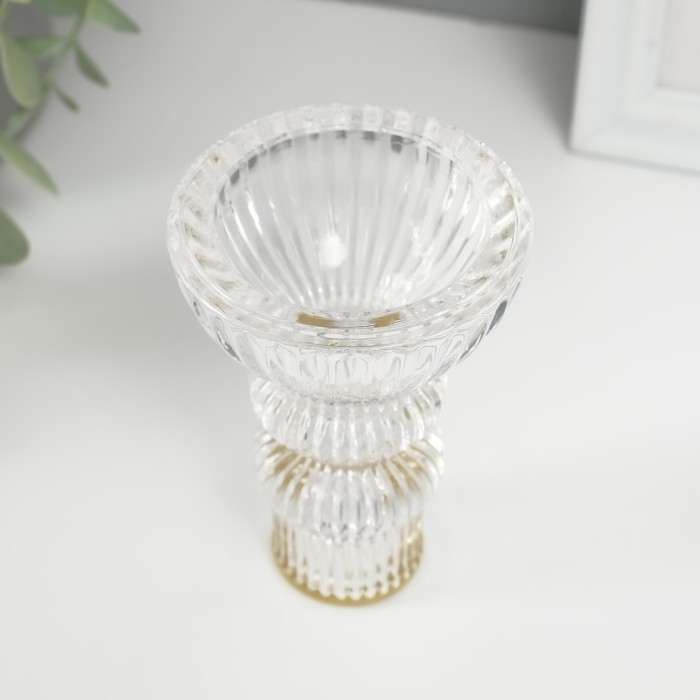 Подсвечник стекло на 1 свечу "Водопад. Колонна" с золотом d=2 см 7х7х10 см