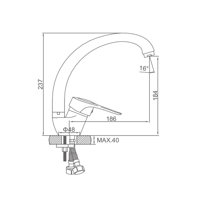 Cмеситель для кухни Accoona A5042, однорычажный, силумин, хром