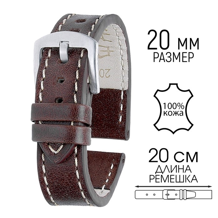 Ремешок для часов, 20 мм, запряжник 80 мм, горт 120 мм, натуральная кожа, коричневый