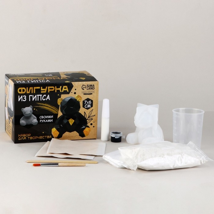 Фигурка гипсовая под раскраску своими руками «Полигональный гипсовый мишка», 7 х 6 см, набор для создания