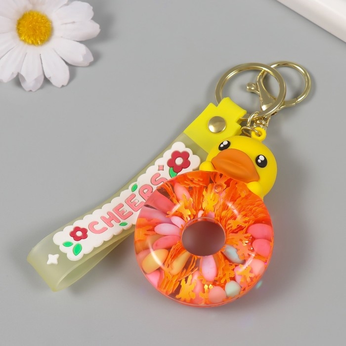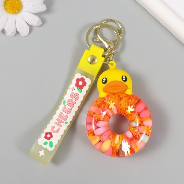 Брелок резина с карабином, ремешком "Утёнок" водный с декором 8х5,5х2,5 см