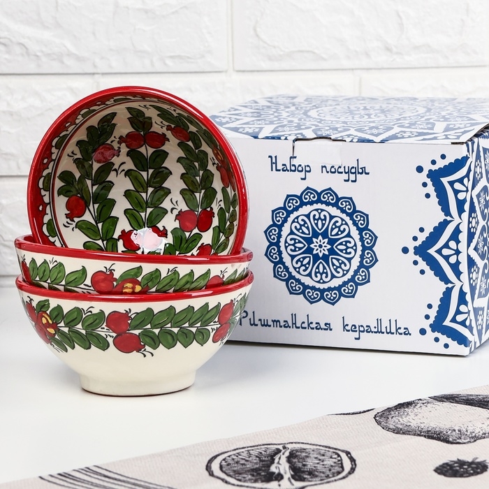 Набор салатников Риштанская керамика "Гранаты" 15 см, 3 шт, в подарочной упаковке