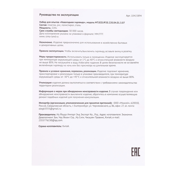 Набор для опытов «Создай свою гирлянду», светодиодный, 8 насадок