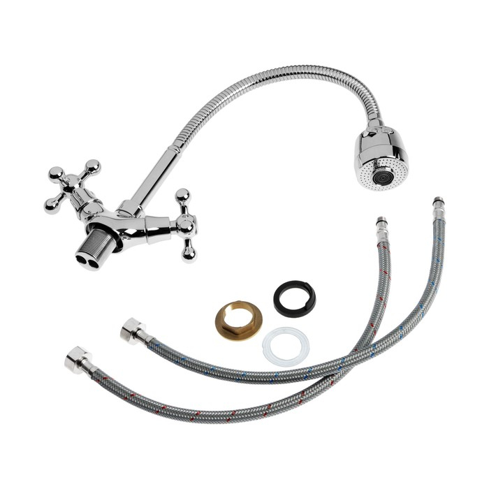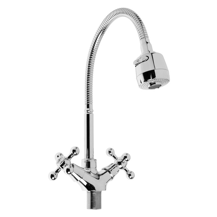Cмеситель для кухни Accoona A4871, двухвентильный, гибкий излив, силумин, хром