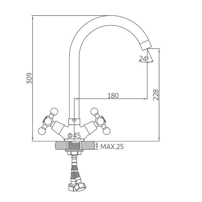 Cмеситель для кухни Accoona A4571A, двухвентильный, с гайкой, латунь, сатин