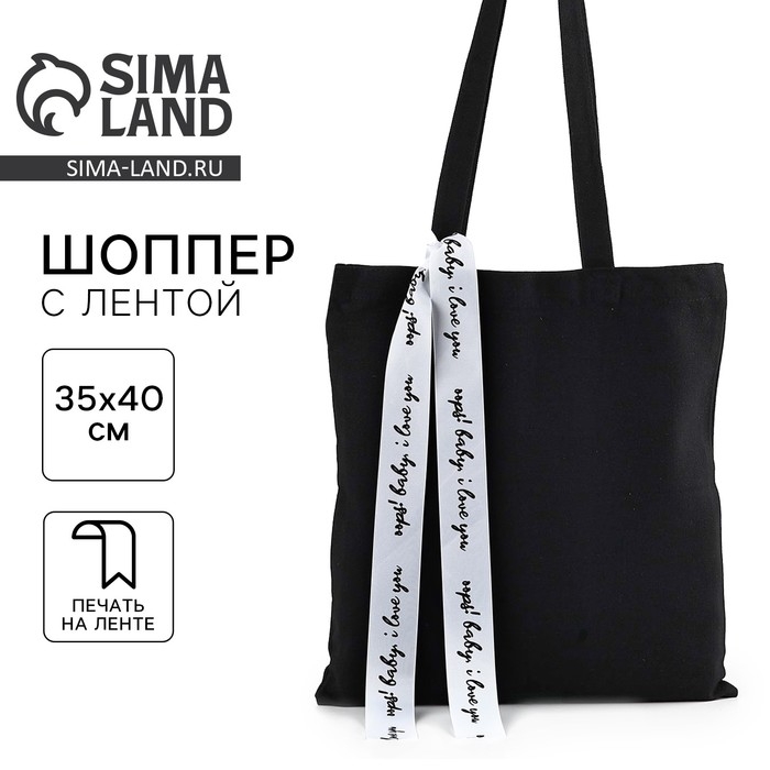 Шопер с лентой I love you, 35х0,5х40 см, цвет чёрный