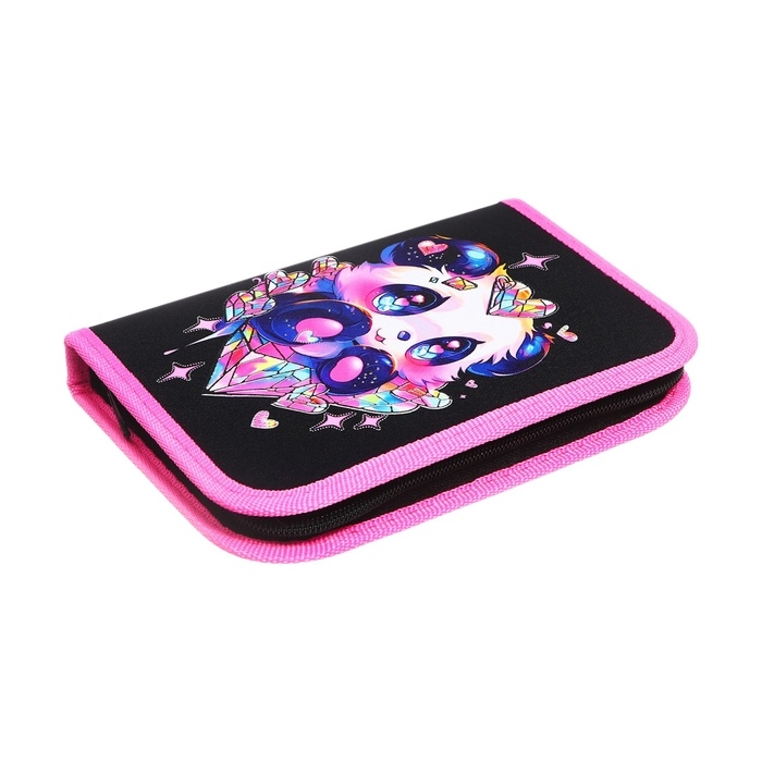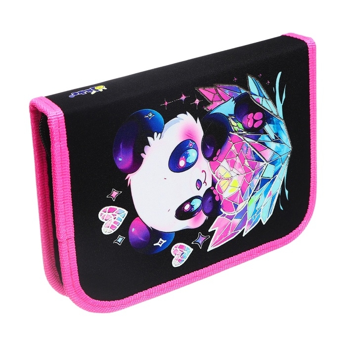 Пенал 1 секция 130 х 190 х 30 мм, с откидной планкой, ПКТ 07-22-19 "Панда в сердечках" ламинированный картон