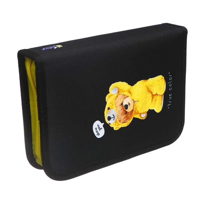 Пенал 1 секция, 140 х 200 х 40 мм, 2 откидные планки, тканевый, ПКТ 09-20 "Мишка Кря"