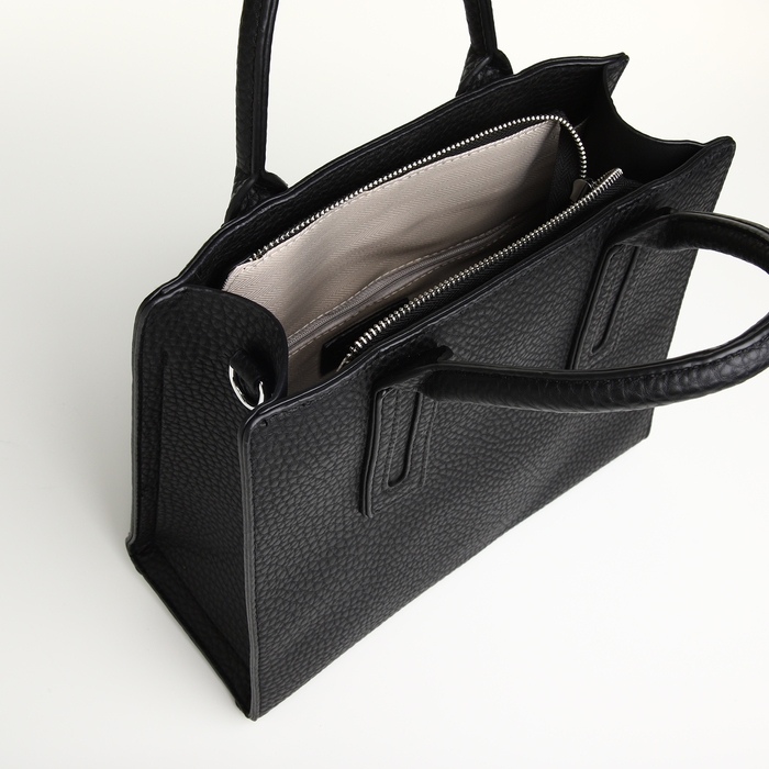 Сумка женская на молнии, TEXTURA, средний размер, цвет чёрный