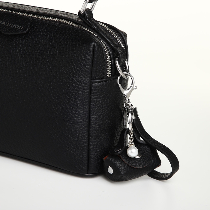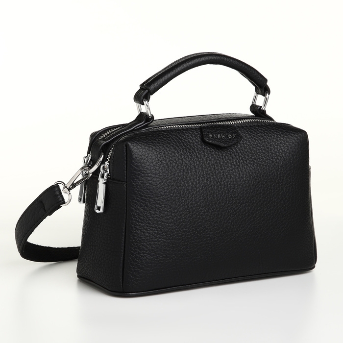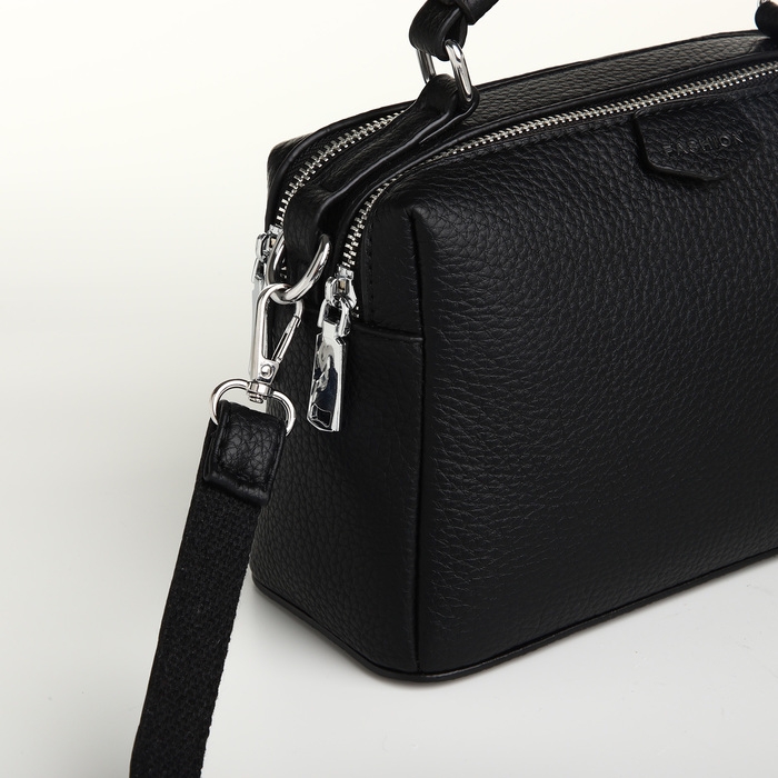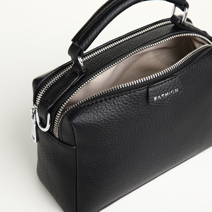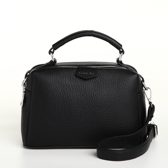 Сумка женская, 23*14*10, 2 отд на молнии, н/карман, регул ремень, черный