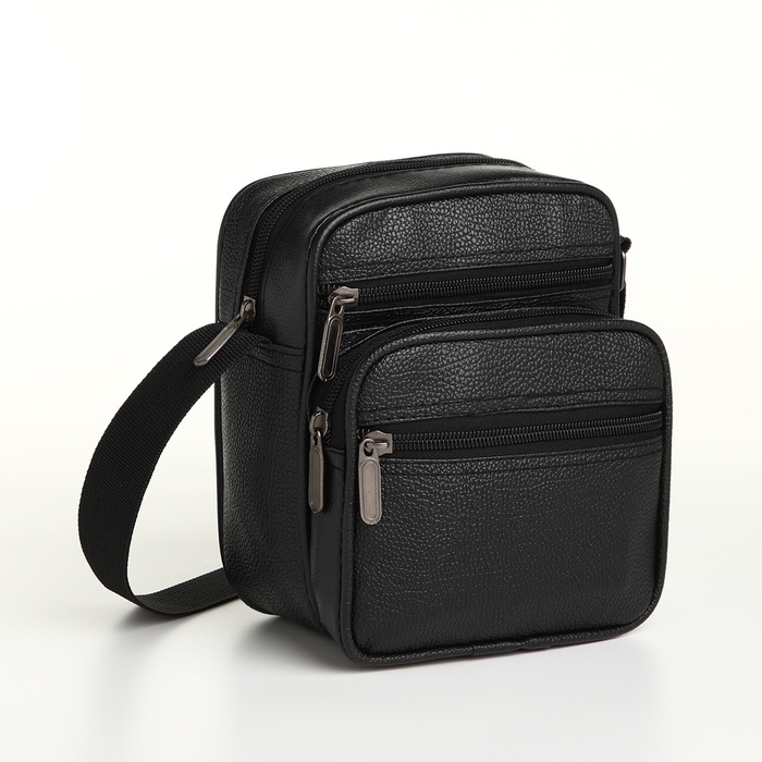 Сумка мужская на молнии, 3 наружных кармана, цвет чёрный