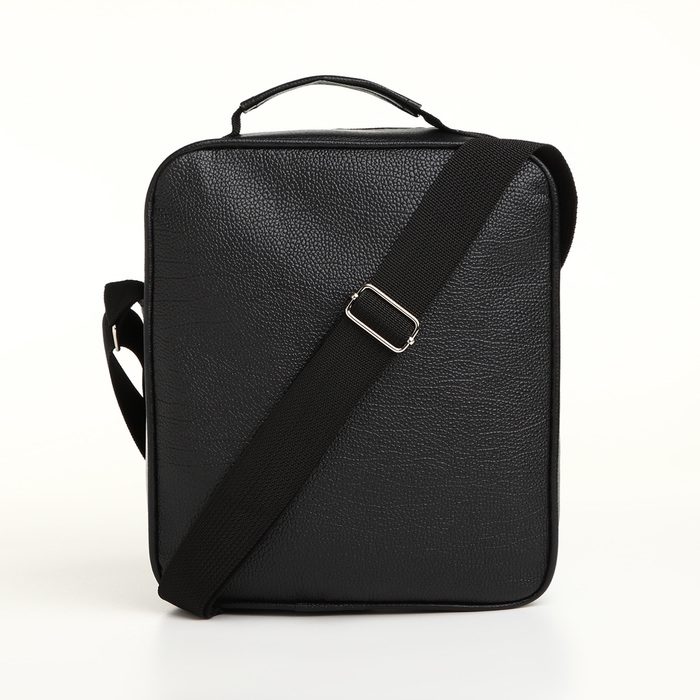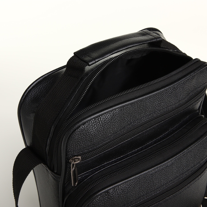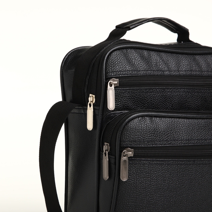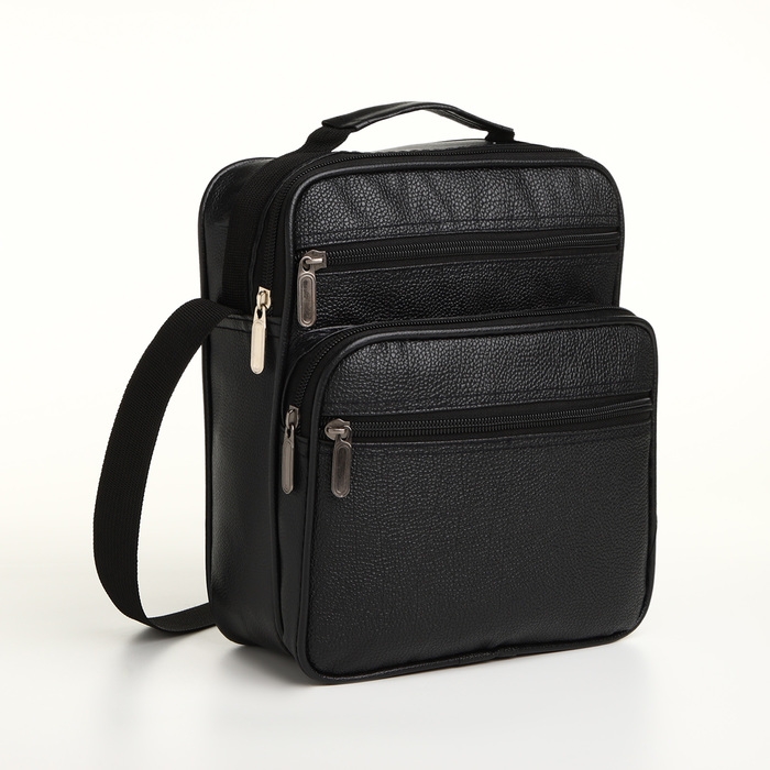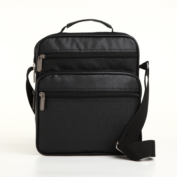 Сумка мужская на молнии, 3 наружных кармана, цвет чёрный