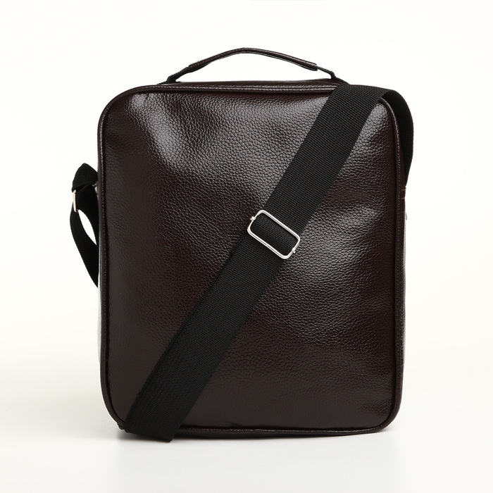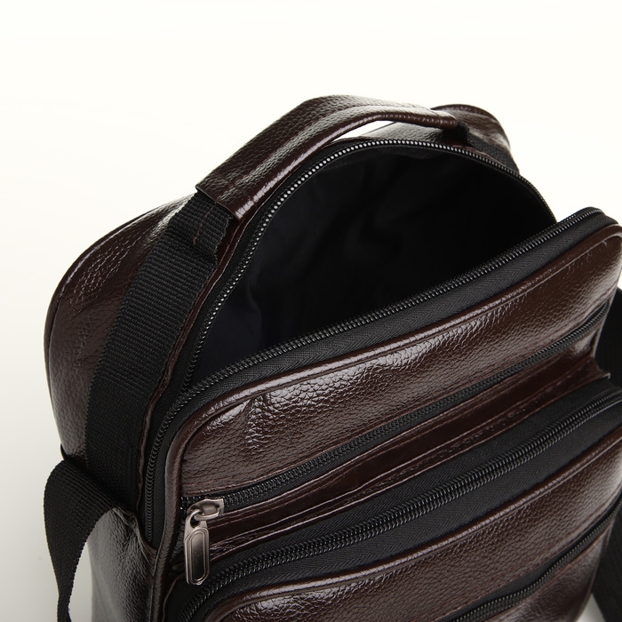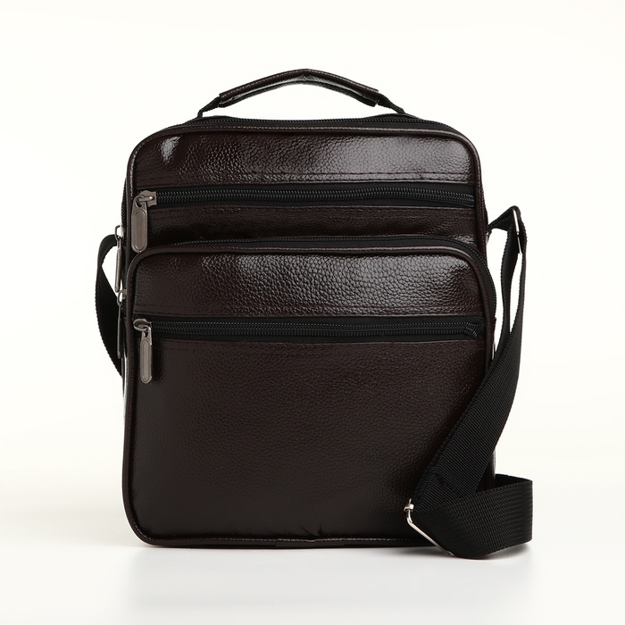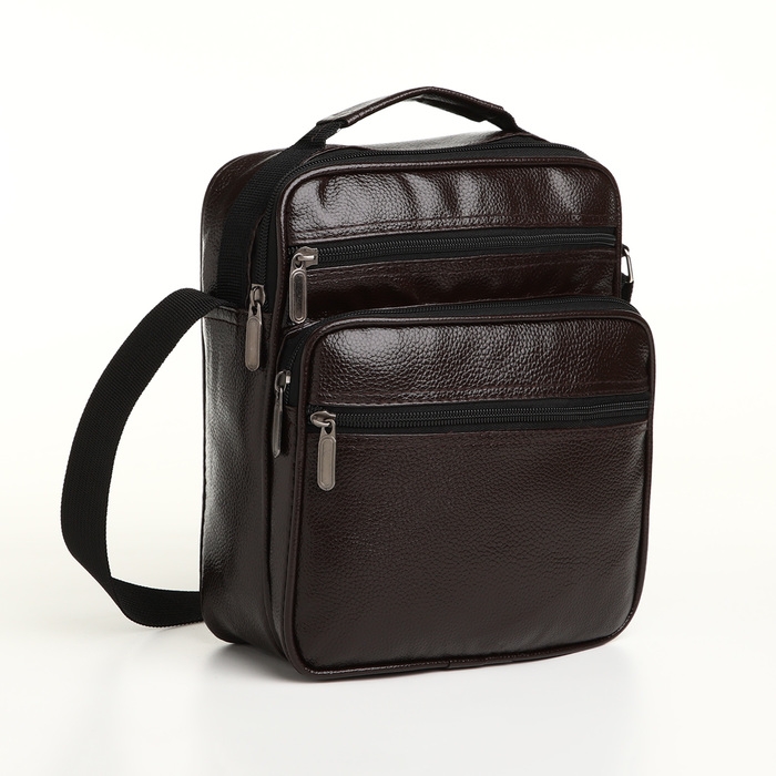 Сумка мужская на молнии, 3 наружных кармана, цвет коричневый