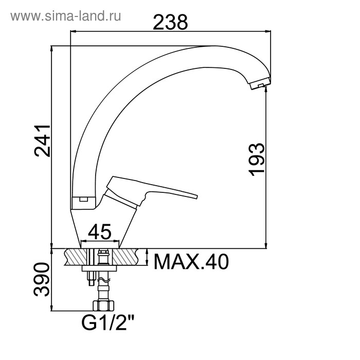 Cмеситель для кухни Accoona A4050A, однорычажный, с гайкой, латунь, сатин