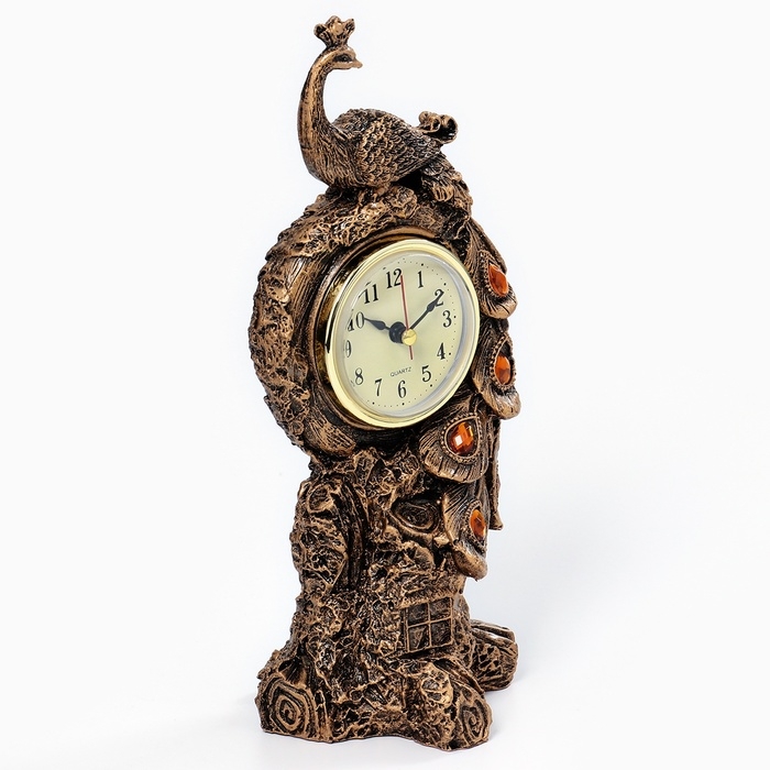 Часы настольные, каминные "Павлин", 12 х 10 х 25 см, d циферблата - 6.3 см