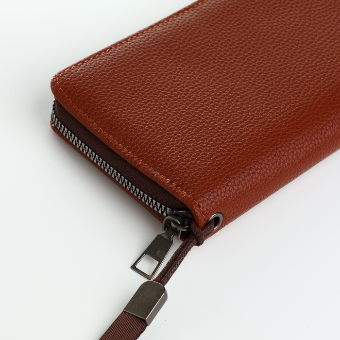 Портмоне мужское на молнии, отдел для карт, монет, цвет коричневый