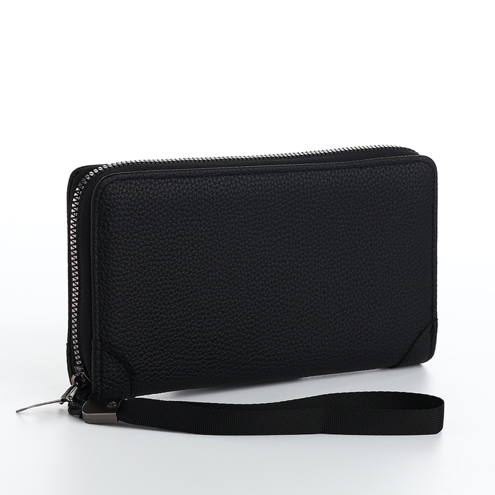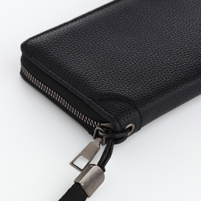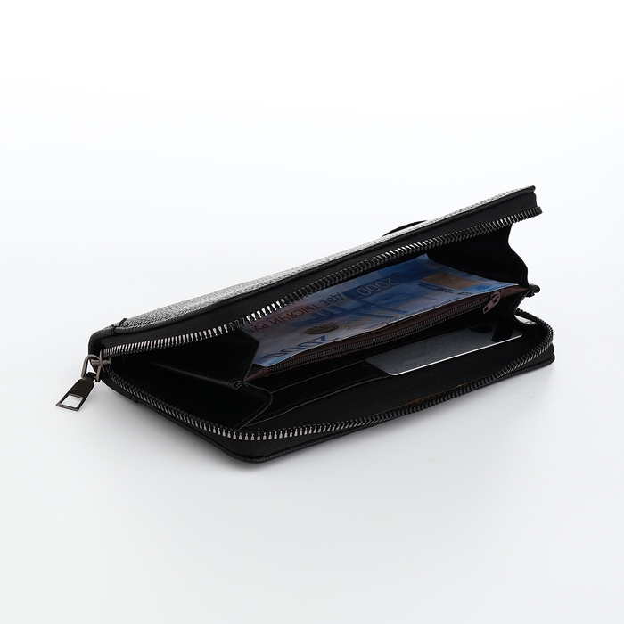 Портмоне мужское на молнии, отдел для карт, монет, цвет чёрный