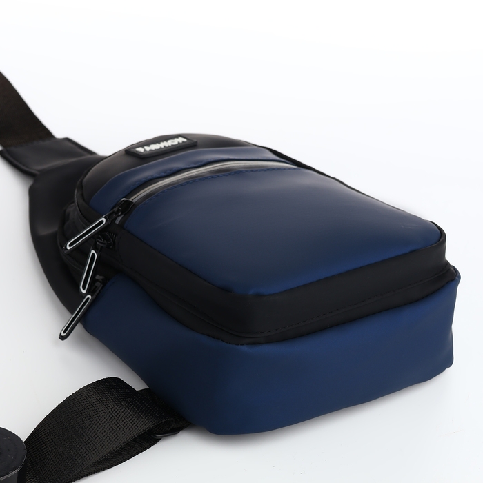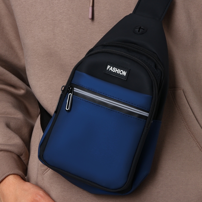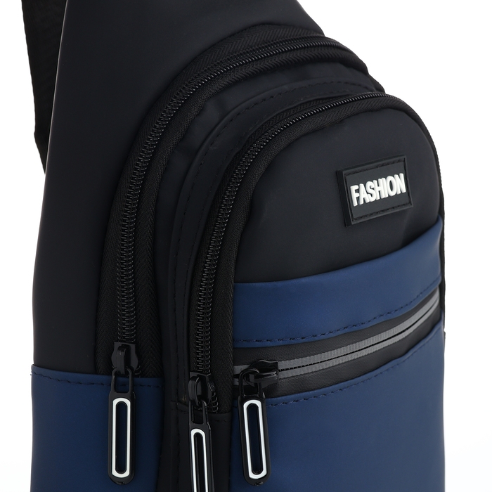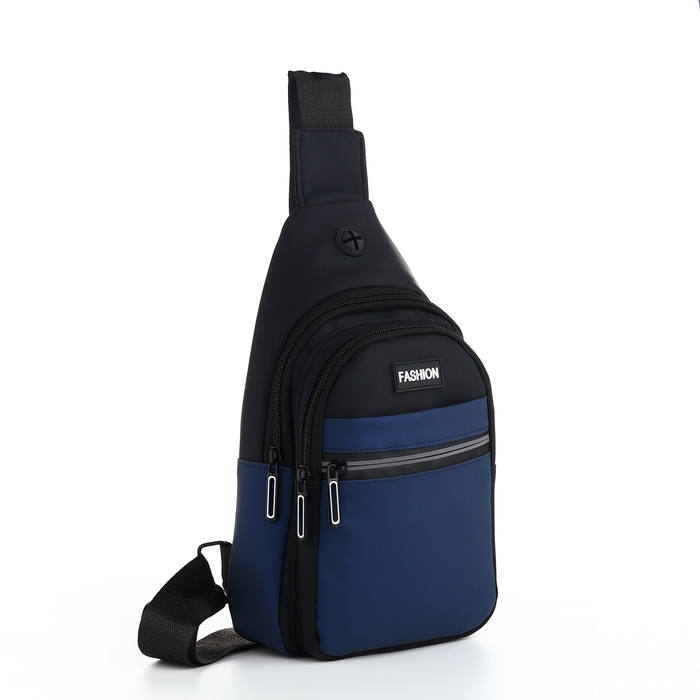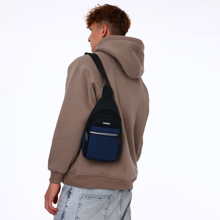Сумка-слинг из текстиля, 3 наружных кармана, цвет синий