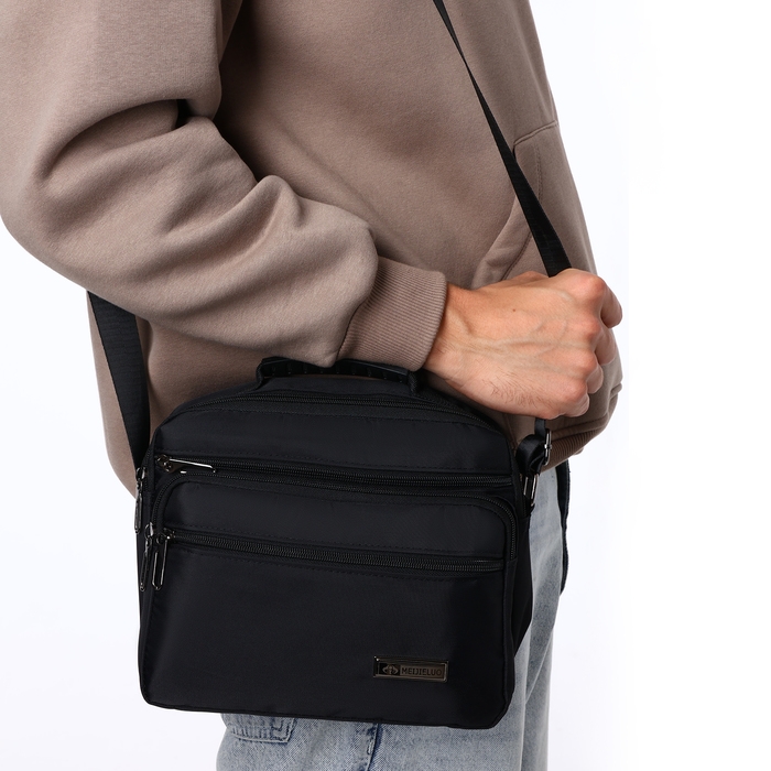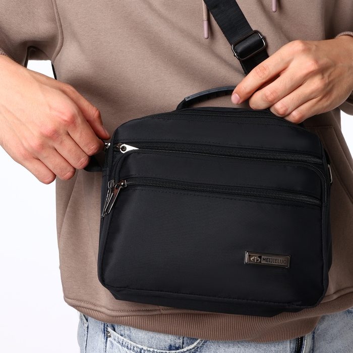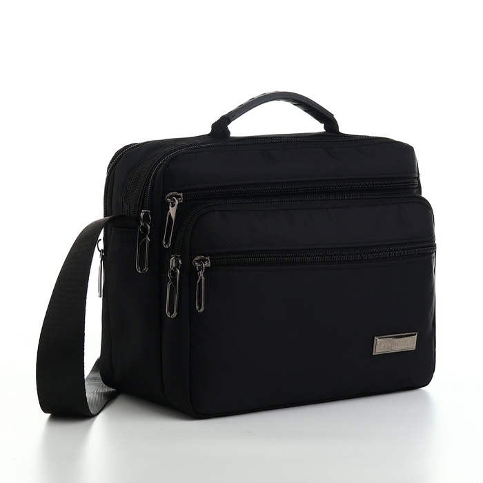 Сумка деловая на молнии, 3 наружных кармана, цвет чёрный