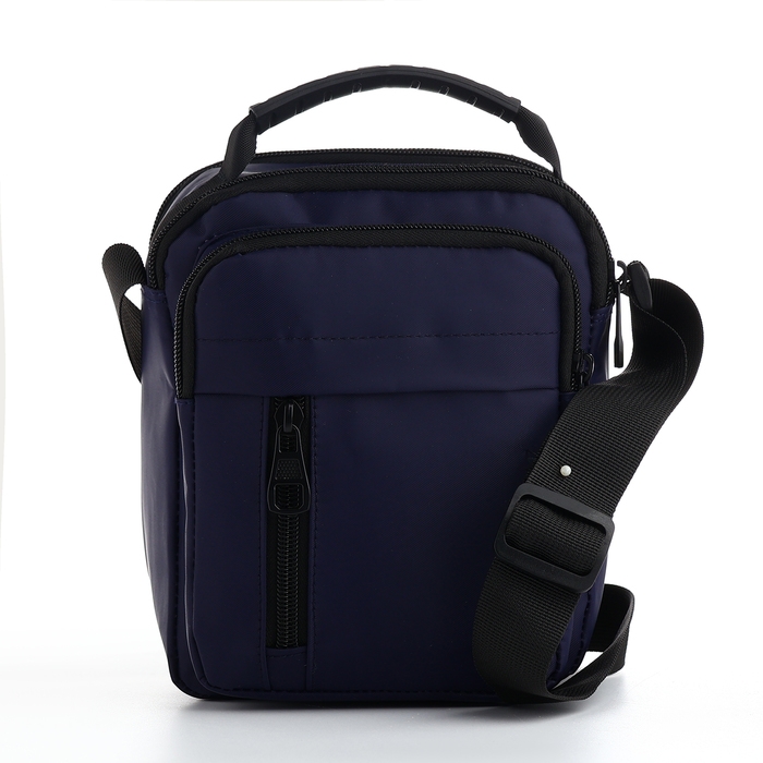 Сумка мужская на молниях, 3 наружных кармана, цвет синий