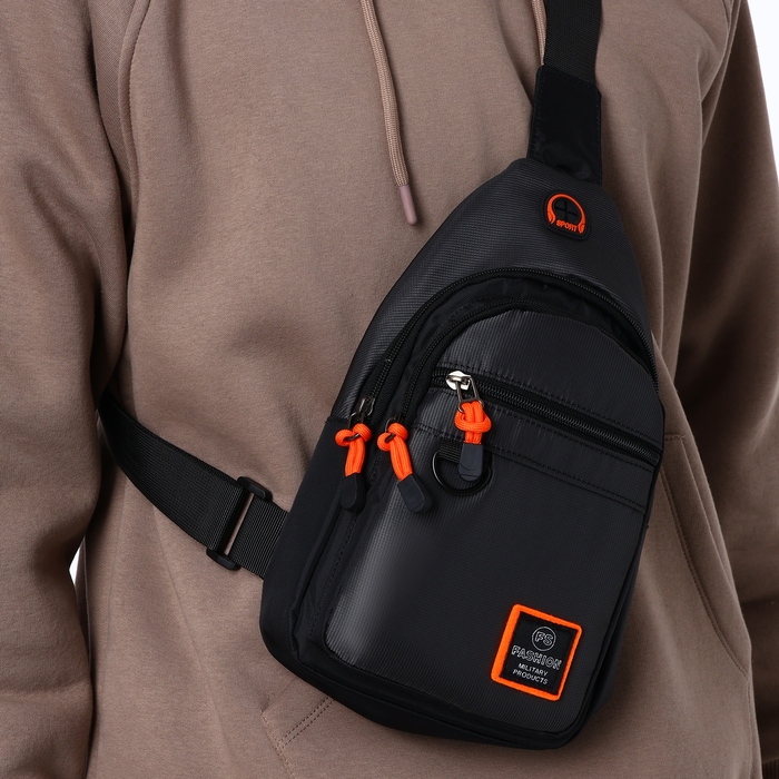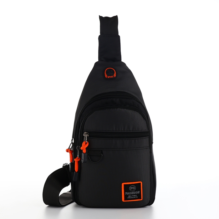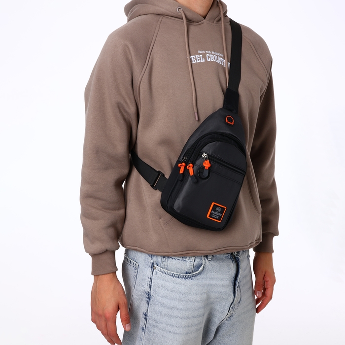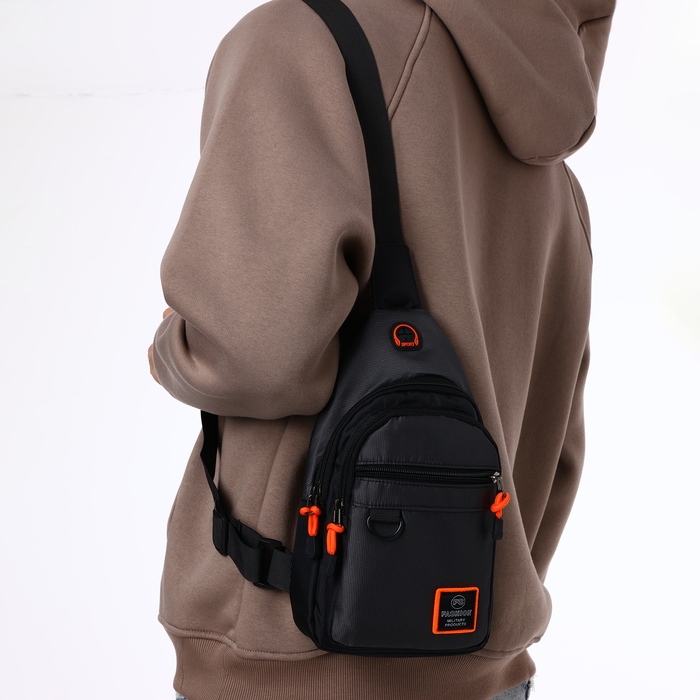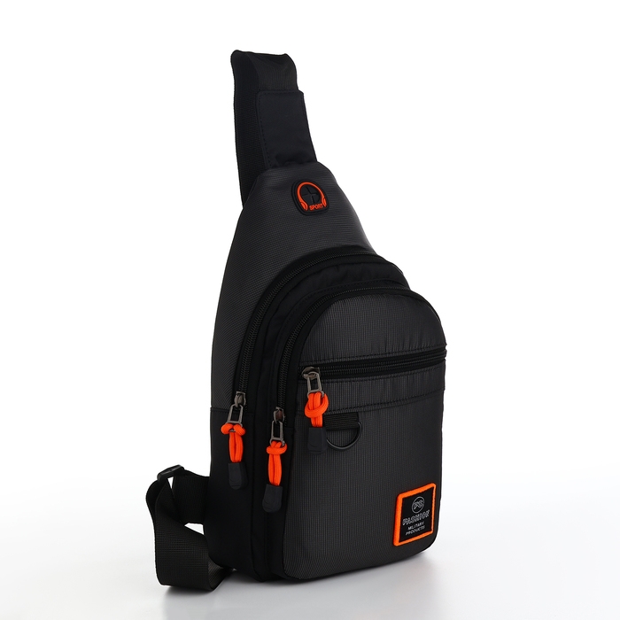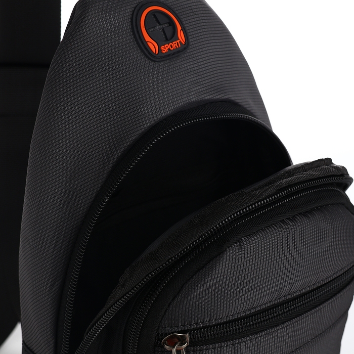 Сумка-слинг из текстиля, 3 наружных кармана, цвет серый