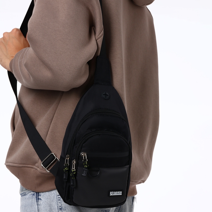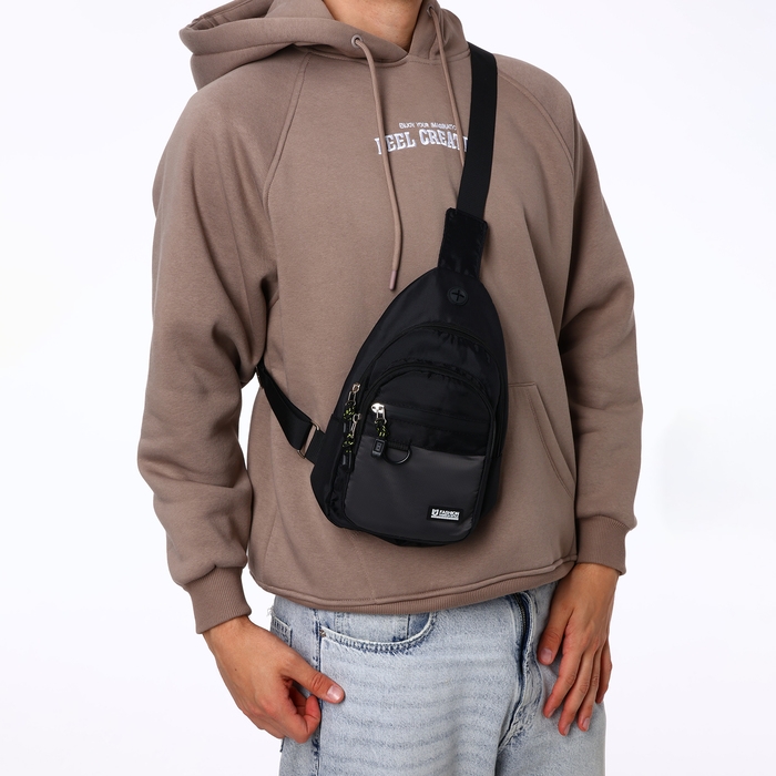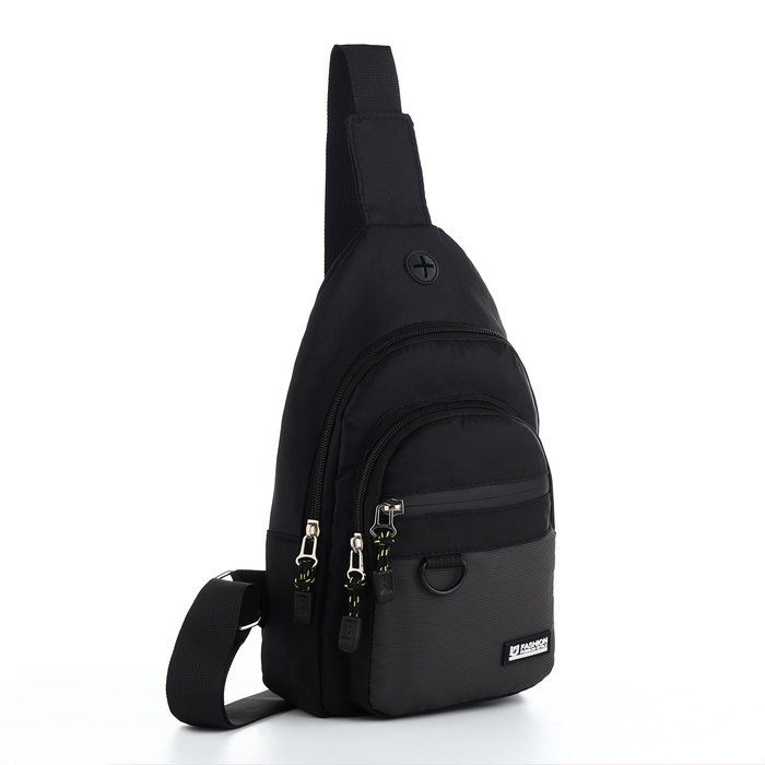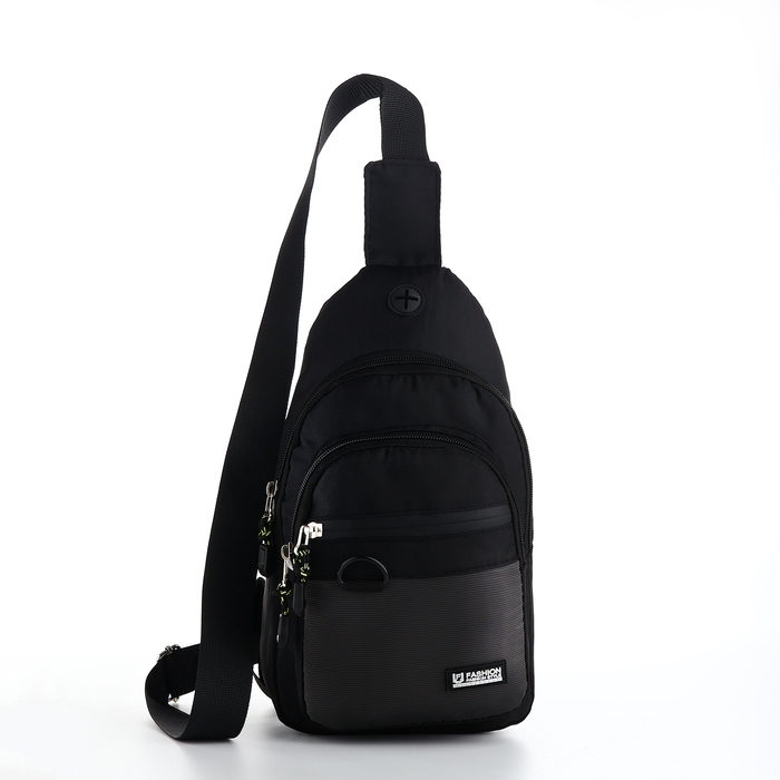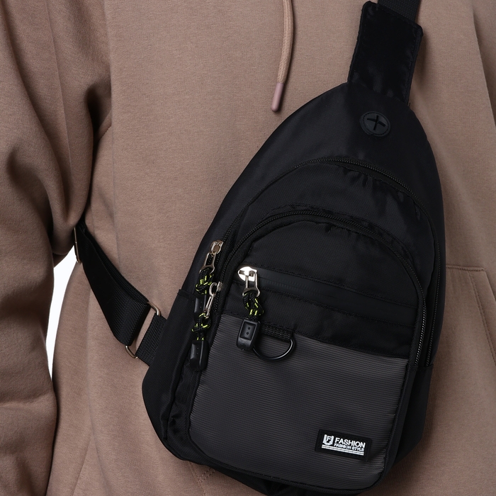Сумка-слинг из текстиля, 3 наружных кармана, цвет серый
