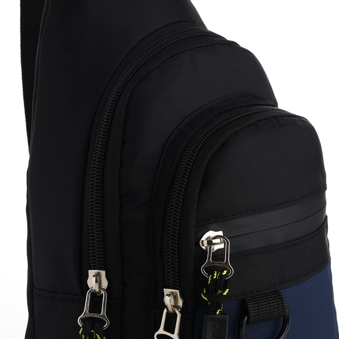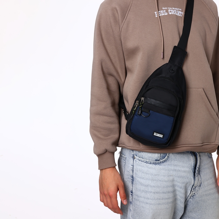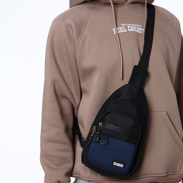 Сумка-слинг из текстиля, 3 наружных кармана, цвет синий
