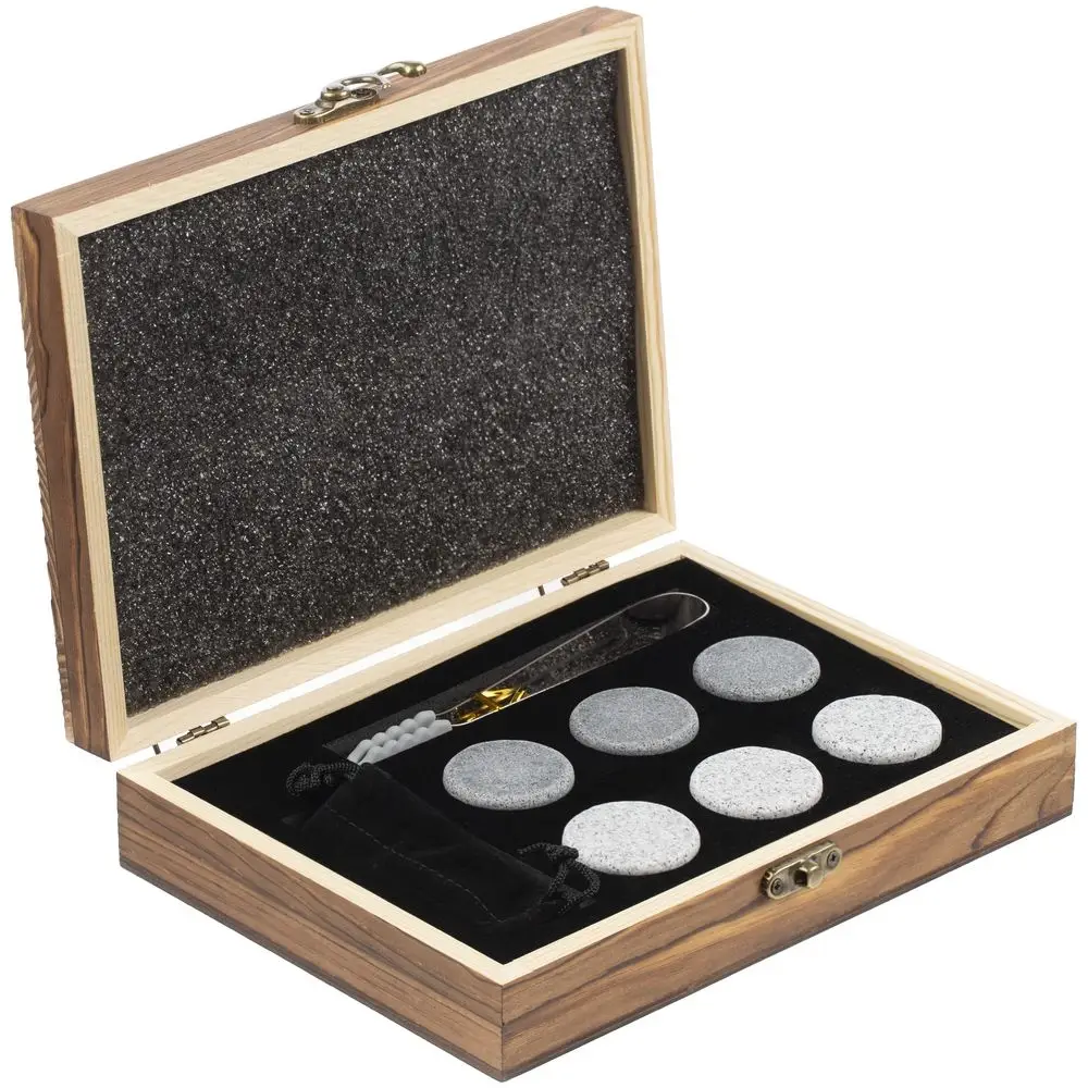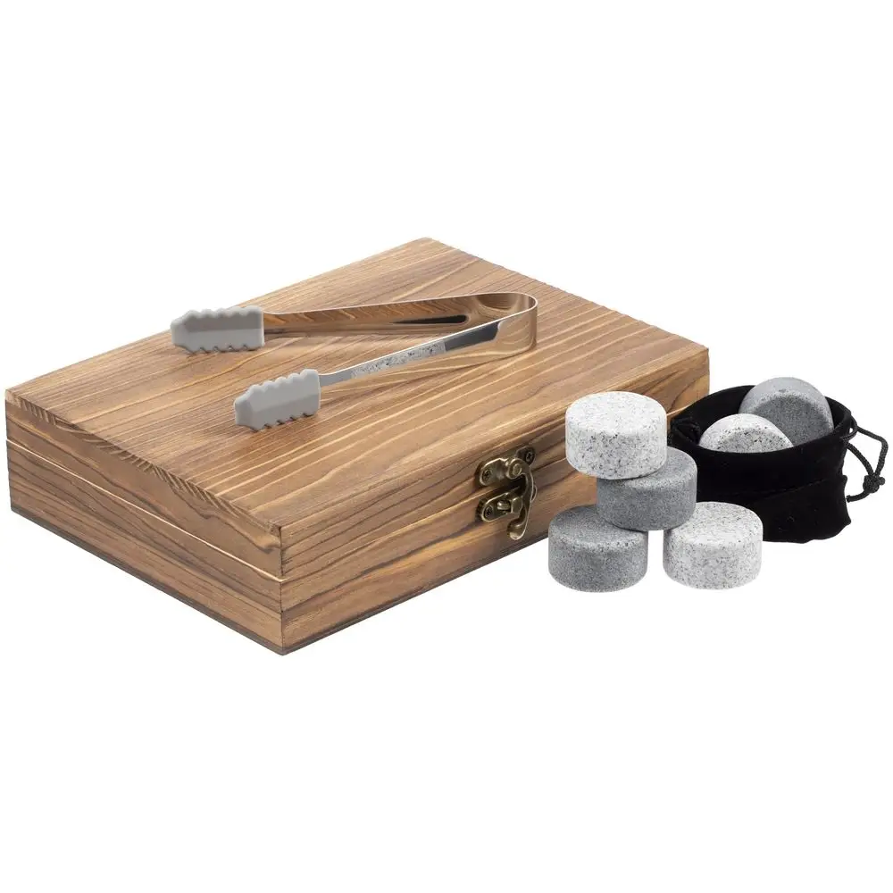 Кажется, пора открывать собственный Rock Bar.В наборе щипцы, мешочек и 6 камней для виски в подарочной деревянной коробке. Перед использованием камни нужно охладить в морозильной камере.