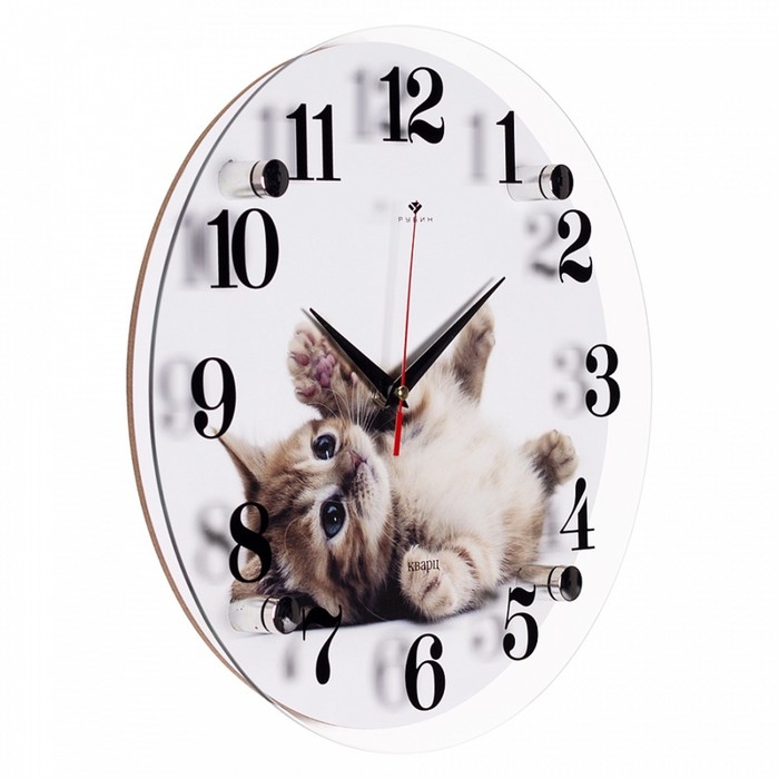 Часы настенные, интерьерные "Серый котёнок", d-30 см, бесшумные
