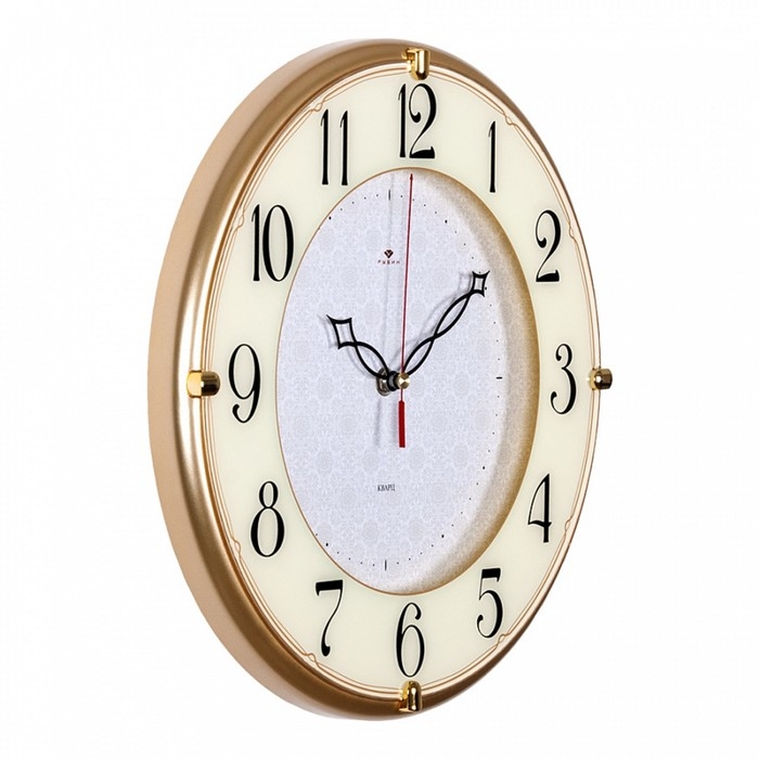 Настенные часы - это не только функциональный предмет интерьера, но и стильный аксессуар, который может подчеркнуть дизайн помещения. Они помогают следить за временем, соблюдать распорядок дня и организовывать свою деятельность. Кроме того, настенные часы могут быть важным элементом декора, который придает комнате завершенный вид. Они могут стать ярким акцентом в интерьере или, наоборот, гармонично вписаться в общий стиль помещения. Обладают высокой прочностью, долговечностью и устойчивостью к внешним воздействиям. Изготовленные из прочного пластика, они станут настоящим украшением и подчеркнут индивидуальность вашего вкуса. Кварцевый механизм обеспечивает точность хода и гарантирует, что часы будут идти без сбоев на протяжении многих лет. Часы бесшумны, вы не услышите раздражающих звуков из-за отсутствия шумовых эффектов. Питание осуществляется от батарейки типа АА (в комплект не входит). Диаметр часов составляет 32,5 см, что позволяет разместить их в любом удобном месте. Модель идеально впишется в ваш интерьер и станет его изюминкой.