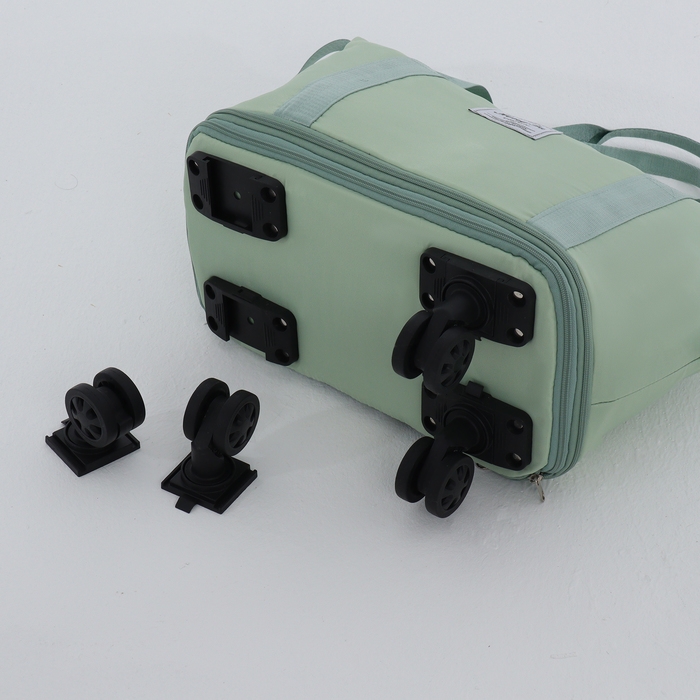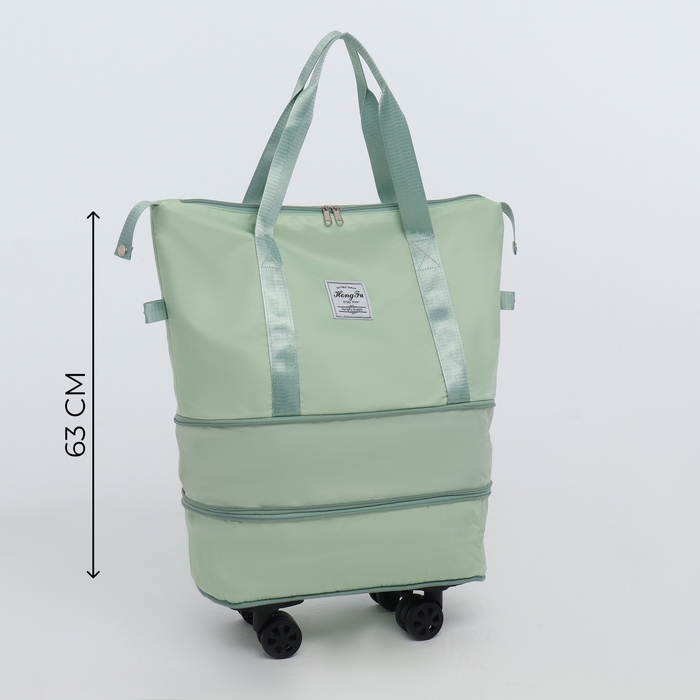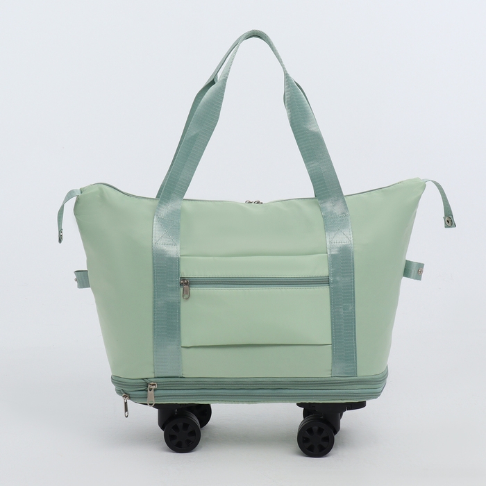 Сумка дорожная на колёсах, с увеличением, наружный карман, держатель для чемодана, цвет зелёный