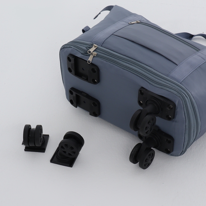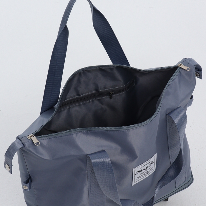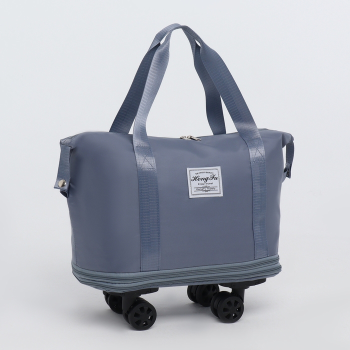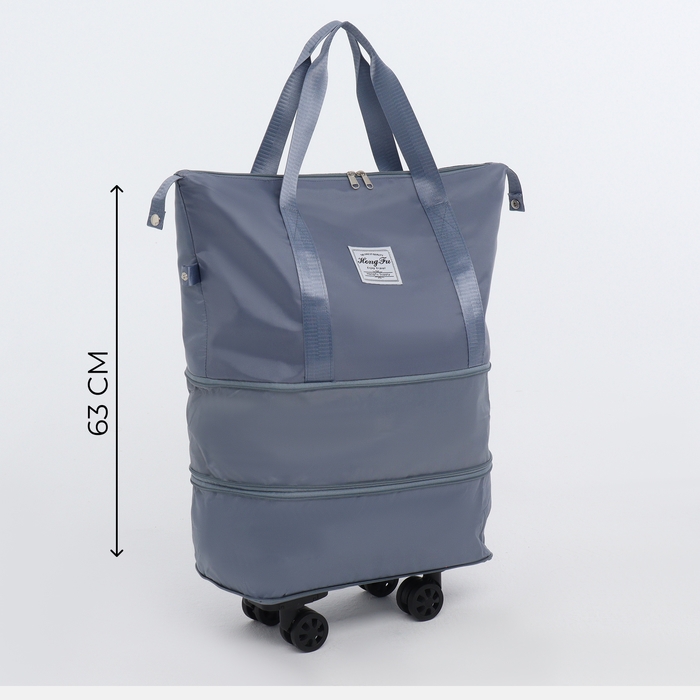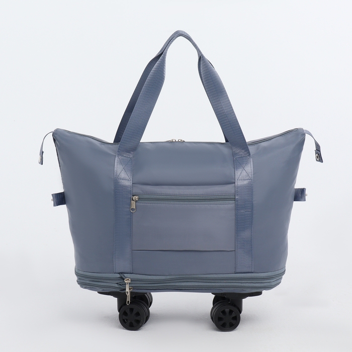 Сумка дорожная на колёсах, с увеличением, наружный карман, держатель для чемодана, цвет голубой