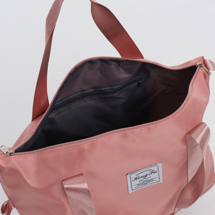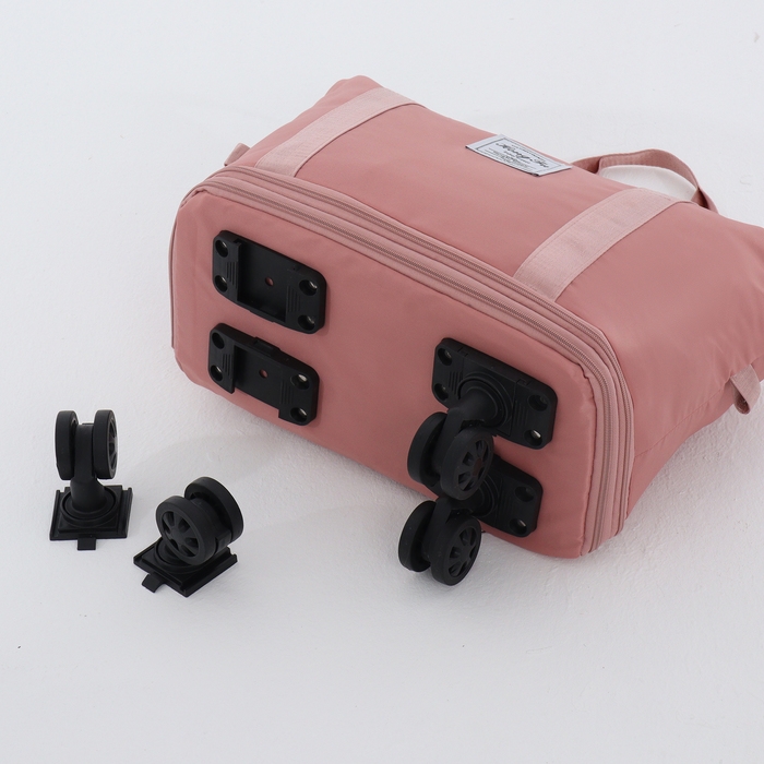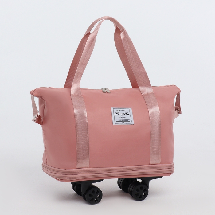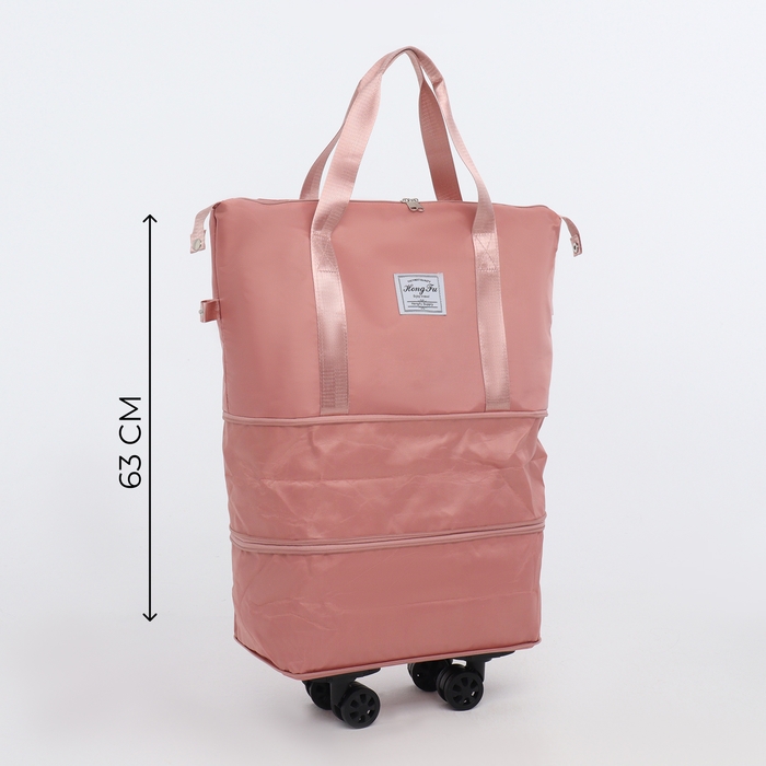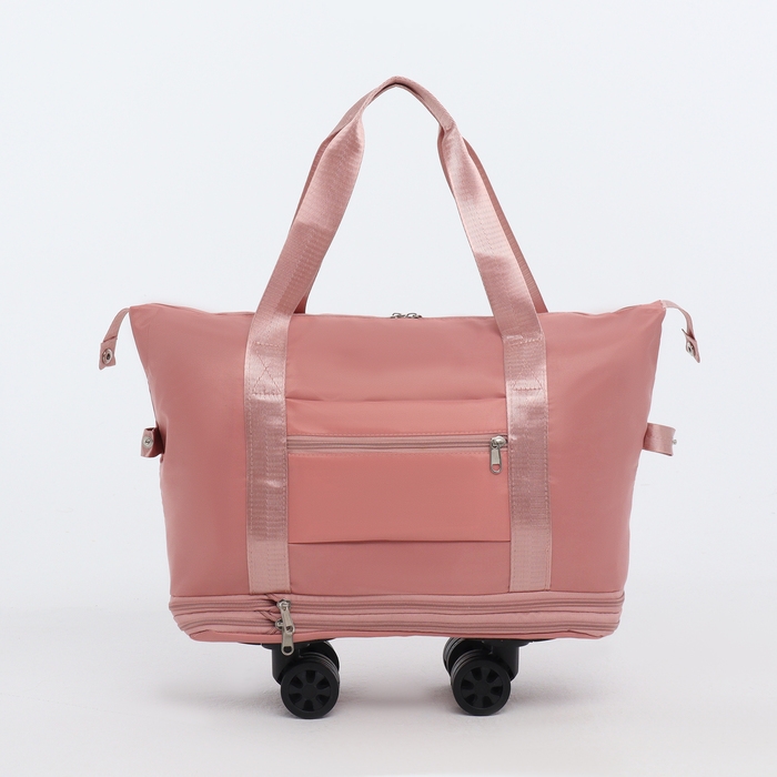 Сумка дорожная на колёсах, с увеличением, наружный карман, держатель для чемодана, цвет розовый