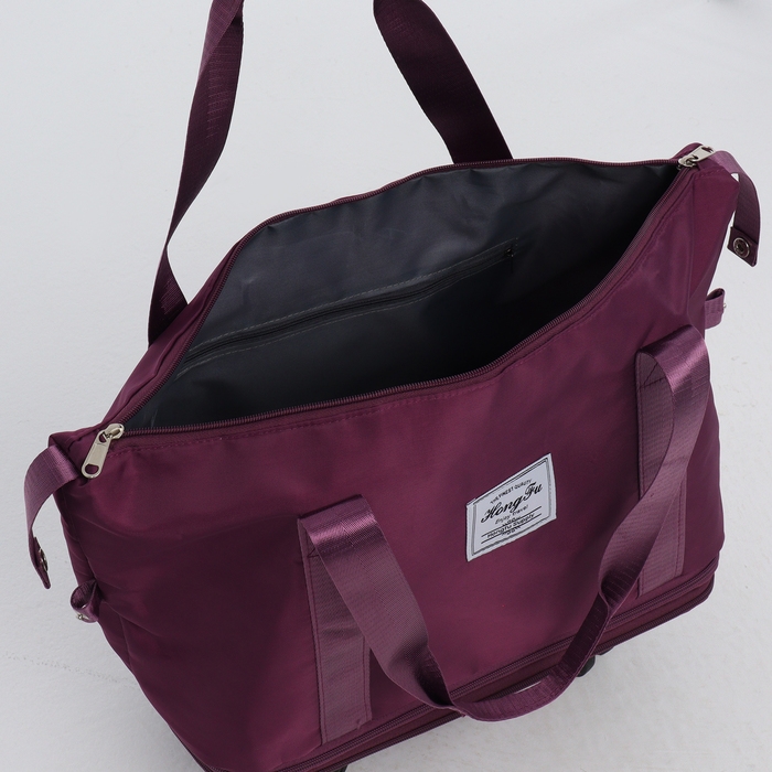 Сумка дорожная на колёсах, с увеличением, наружный карман, держатель для чемодана, цвет фиолетовый