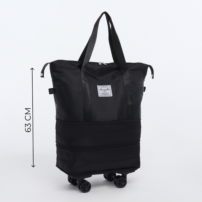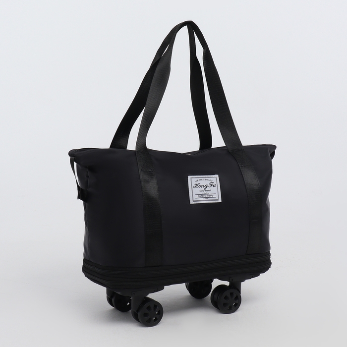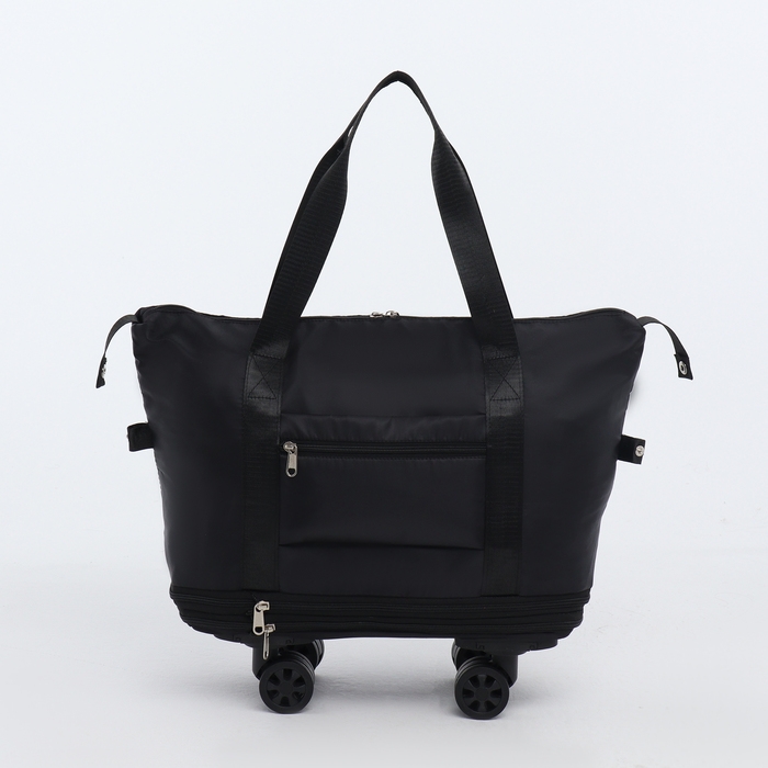 Сумка дорожная на колёсах, с увеличением, наружный карман, держатель для чемодана, цвет чёрный