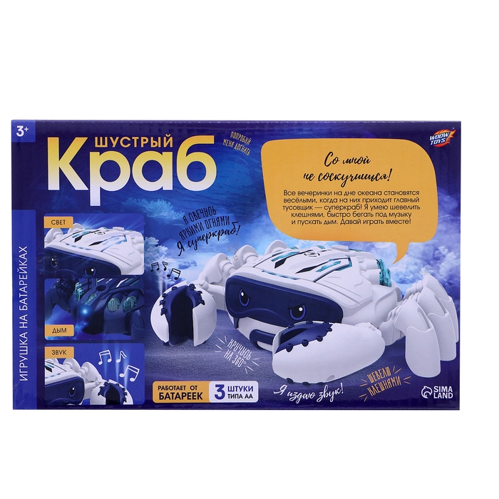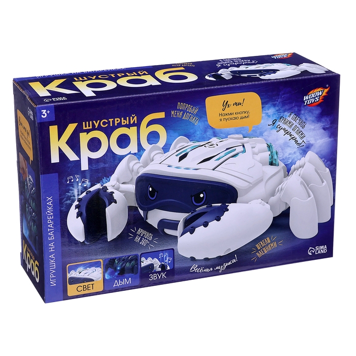 Животное «Шустрый краб», световые, звуковые, дымовые эффекты, работает от батареек, цвет белый