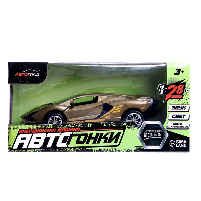 Машина металлическая «Купе», инерционная, 1:28, световые и звуковые эффекты, открываются двери, цвет зелёный