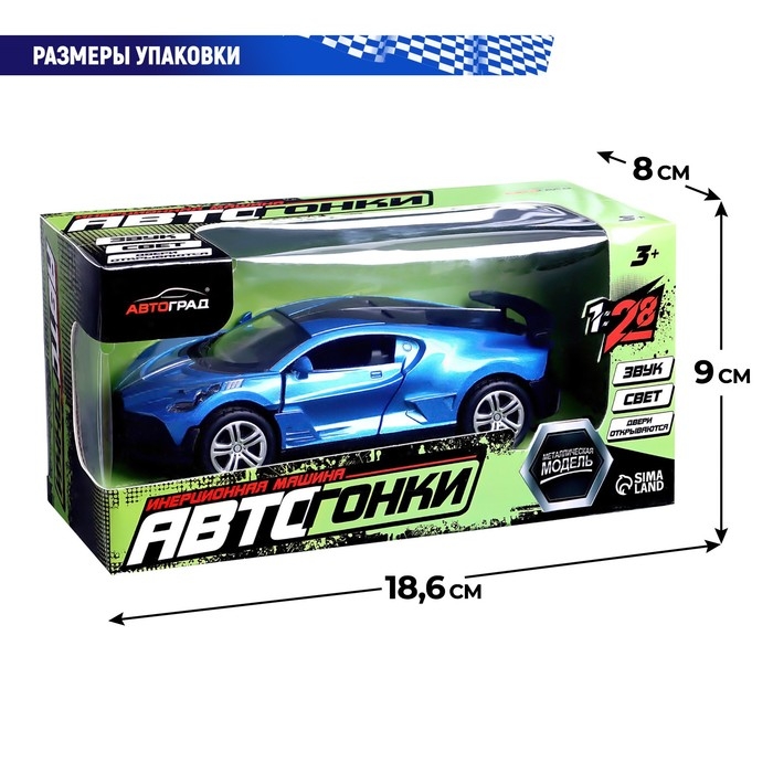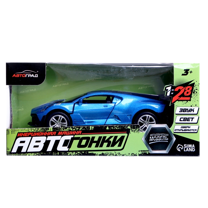 Машина металлическая «Купе», 1:28, световые и звуковые эффекты, открываются двери, цвет синий