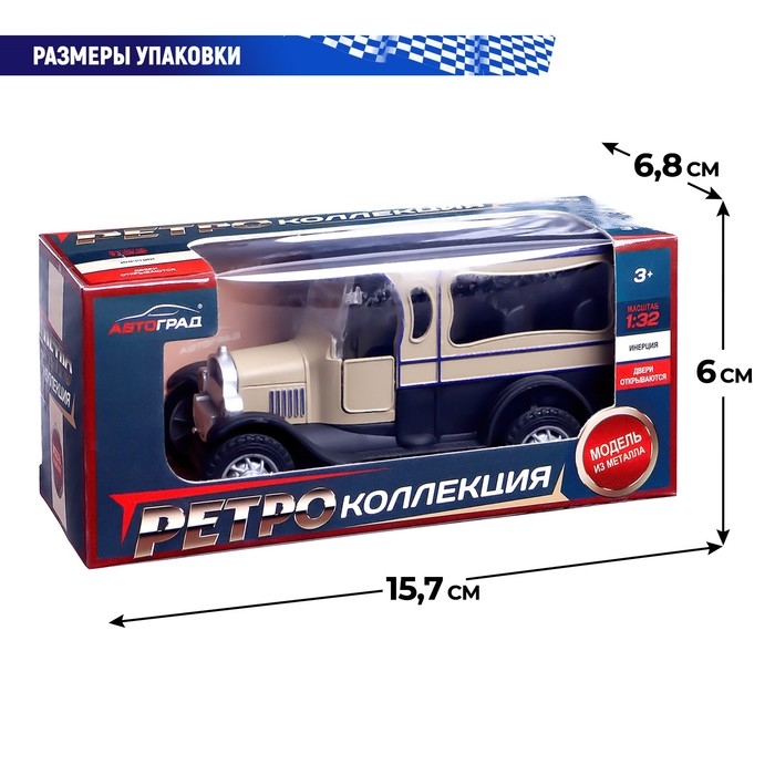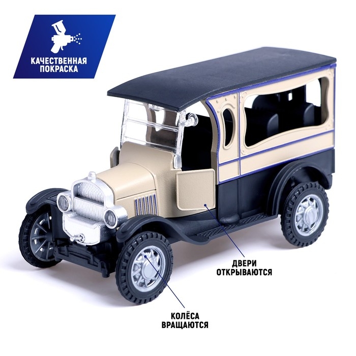Машина металлическая «Ретро», инерционная, 1:32, открываются двери, цвет бежевый