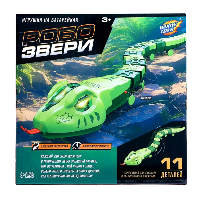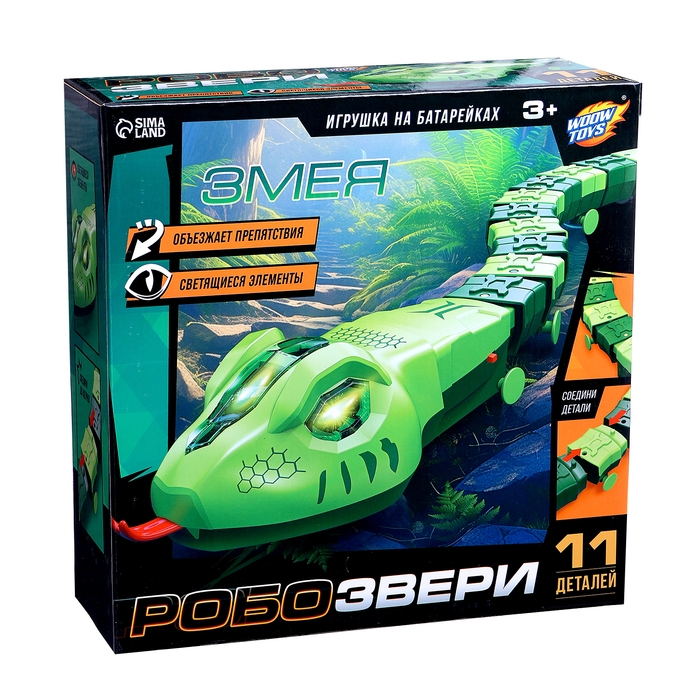 Животное «Змея», световые эффекты, работает от батареек, 11 деталей, цвет зелёный