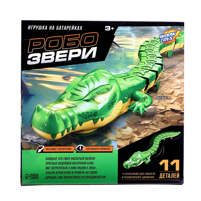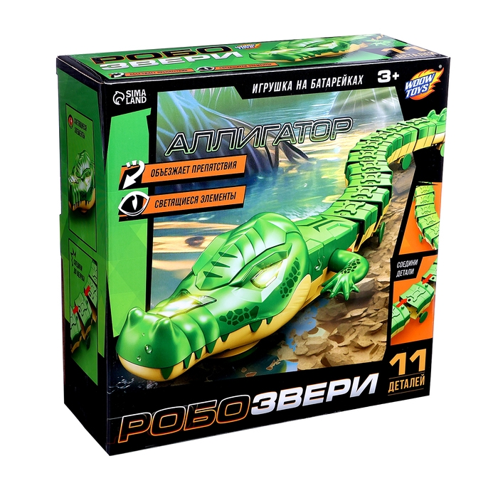 Животное «Аллигатор», световые эффекты, работает от батареек, 11 деталей, цвет зелёный