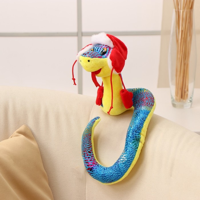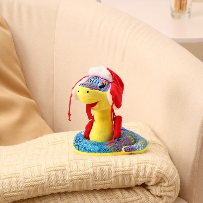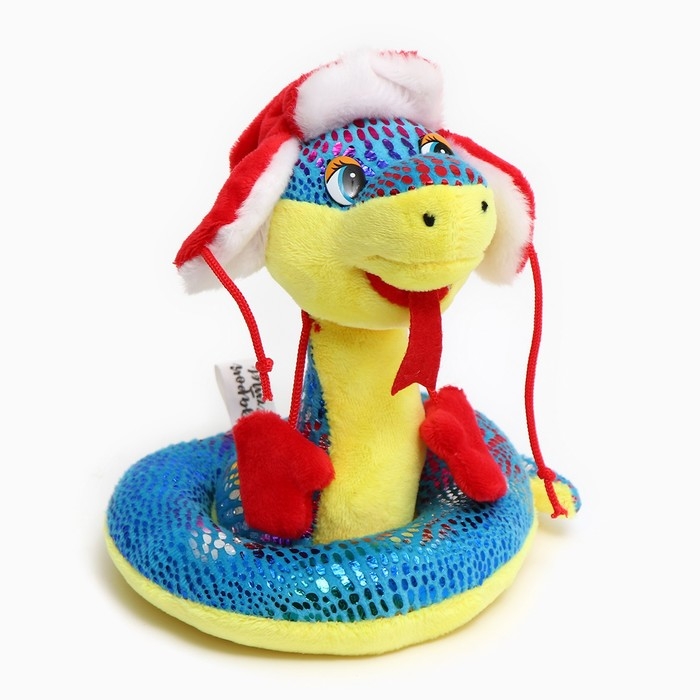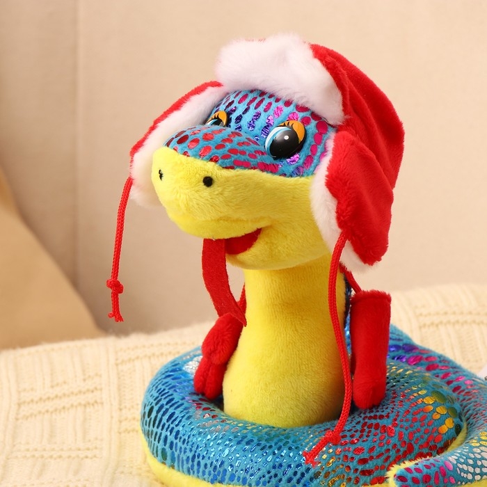 Мягкая игрушка «Змея», в шапке ушанке, 15 см, цвет синий