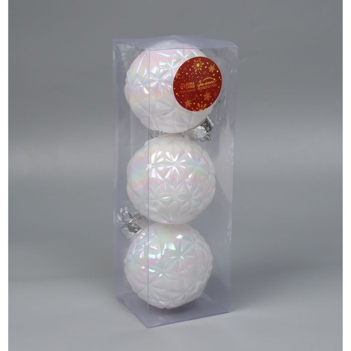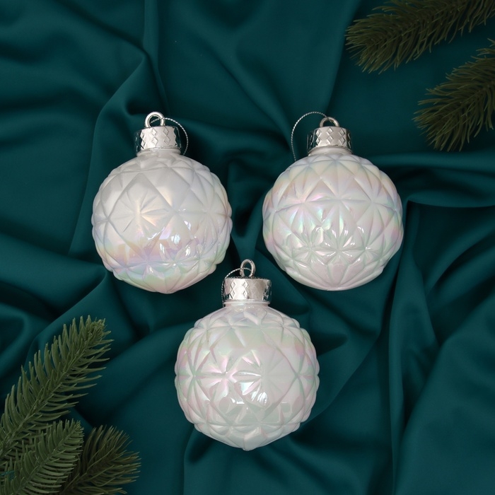 Набор шаров пластик d-8 см, 3 шт "Перелив" сеточка, белый перламутр