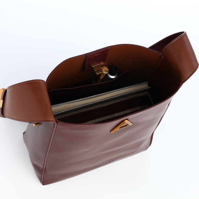 - Элегантный дизайн: классический коричневый цвет и бронзовая фурнитура придают сумке утончённый вид, который идеально сочетается с любым гардеробом.