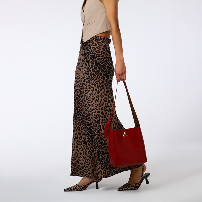 - Элегантный дизайн: классический бордовый цвет и бронзовая фурнитура придают сумке утончённый вид, который идеально сочетается с любым гардеробом.