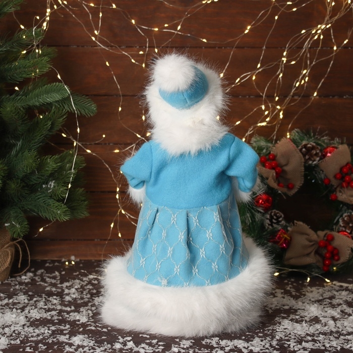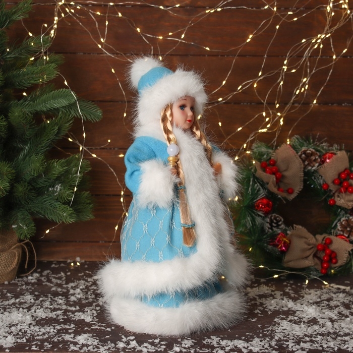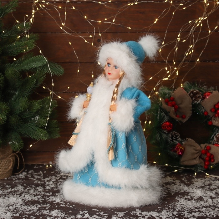 Снегурочка "В пушистой шубке, с фонариком" двигается, с подсветкой, 40х20 см, голубой