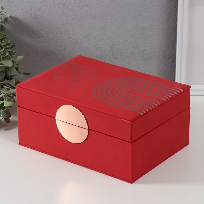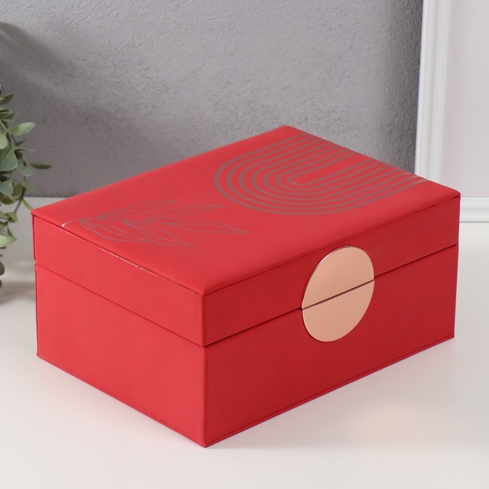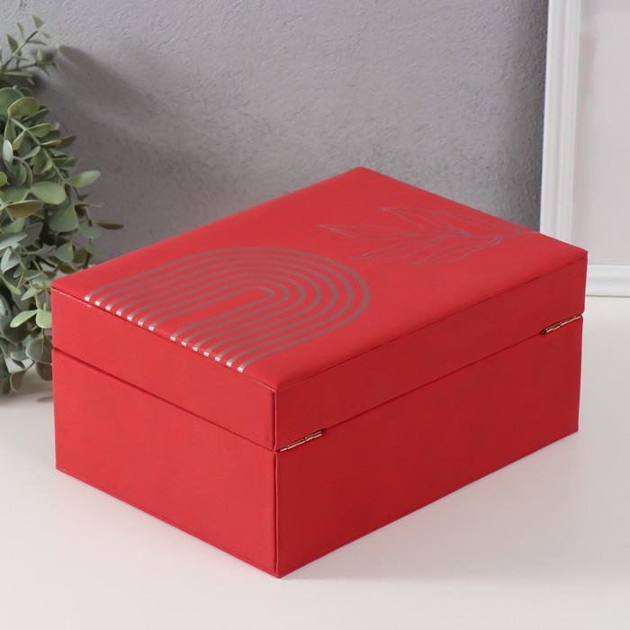 Шкатулка кожзам для украшений "Веточка. Радуга" красная 18х24,5х11 см